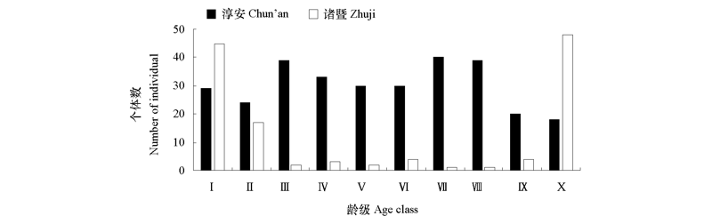 | 龄级 Age class | 淳安种群Chun'an population | 诸暨种群Zhuji population | ||||||
