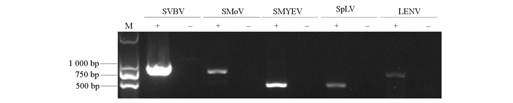 为明确陕西省草莓主要病毒种类及各种病毒在主产区的地理分布,通过LncRNA测序结合反转录聚合酶链式反应(reverse transcription PCR,RT-PCR)对陕西省草莓主产区西安、咸阳和宝鸡的7个区或县的草莓疑似感染病毒病样品进行了检测。结果表明草莓斑驳病毒(strawberry mottle virus,SMoV)和草莓镶脉病毒(strawberry vein band virus,SVBV)在7个区或县均有发生,而草莓轻型黄边病毒(strawberry mild yellow edge virus,SMYEV)、菠菜潜隐病毒(spinach latent virus,SpLV)和番茄线虫传多面体病毒(Lycopersicon esculentum nepovirus,LENV)局部发生。首次报道在草莓上检测到SpLV和LENV。