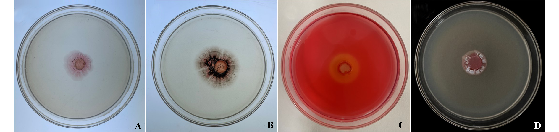 Fig. 10 Results of extracellular enzyme production of strain SD-64 A:Pectinase production medium;B:Glucanase production medium;C:Cellulase production medium;D:Chitinase production medium.