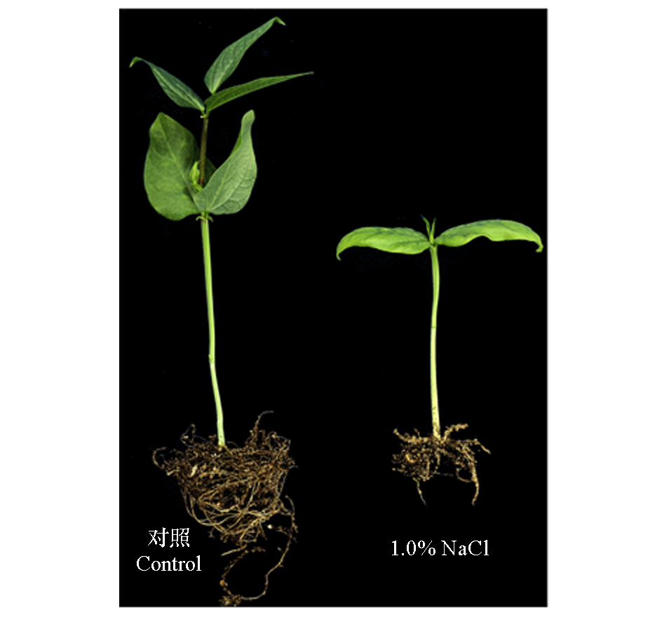 Fig. 4 The phenotype of long cowpea seedlings under normal growth conditions(control)and treated with 1.0% NaCl after 7 days