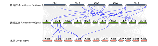 图4 拟南芥(Arabidopsis thaliana)、水稻(Oryza sativa)与普通菜豆(Phaseolus vulgaris)间的Trihelix基因组共线性