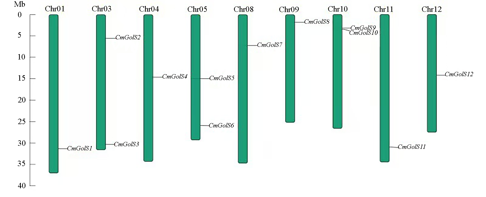 为探索甜瓜肌醇半乳糖苷合成酶(GolS)基因的特性及其响应低温胁迫的表达模式,利用生物信息手段对其家族成员进行全基因组鉴定及染色体位置、进化关系、基因结构、启动子顺式作用元件、组织特异性表达和在低温胁迫下的表达模式等进行分析。结果鉴定出12个CmGolS不均匀地分布在9条染色体上,并且在系统发育树中被分为5族。理化性质分析表明甜瓜CmGolS蛋白均为亲水性蛋白。基因结构分析表明CmGolS基因保守性较高,多有2 ~ 5个内含子且含有与胁迫和赤霉素、生长素、脱落酸等激素响应相关的顺式作用元件以及保守基序“DxD”和“HxxGxxKPW”。CmGolS具有组织表达特异性,大多在雄花中表达,并且在低温胁迫处理下相对表达量大多呈显著上调趋势,表明CmGolS参与响应低温胁迫。