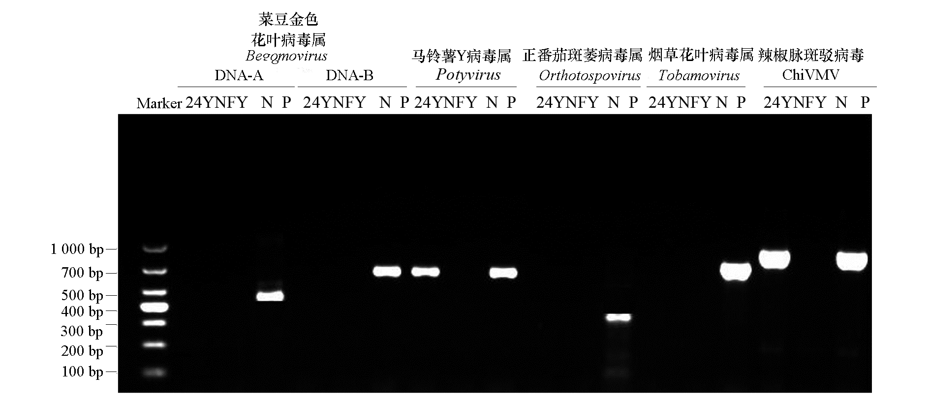 图2 云南芋样品的PCR及RT-PCR扩增结果 24YNFY:云南富源芋样品;N:阴性对照;P:阳性对照