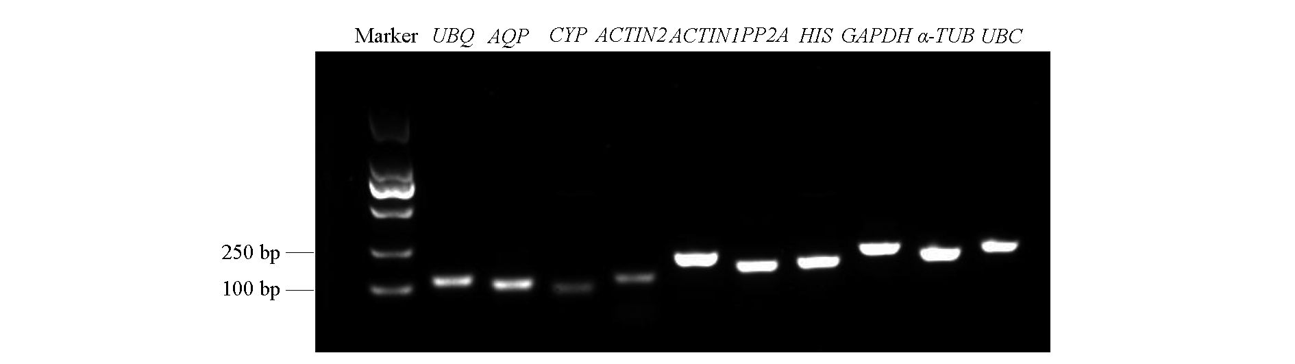 | UBQ(LOC114305206) | 多聚泛素酶基因 Polyubiquitin | F:GACCCTACACTTGGTGCTGC R:TCTGGTGGAATACCCTCCTT | 150 | -3.1280 | 108.7820 | 0.9921 |
