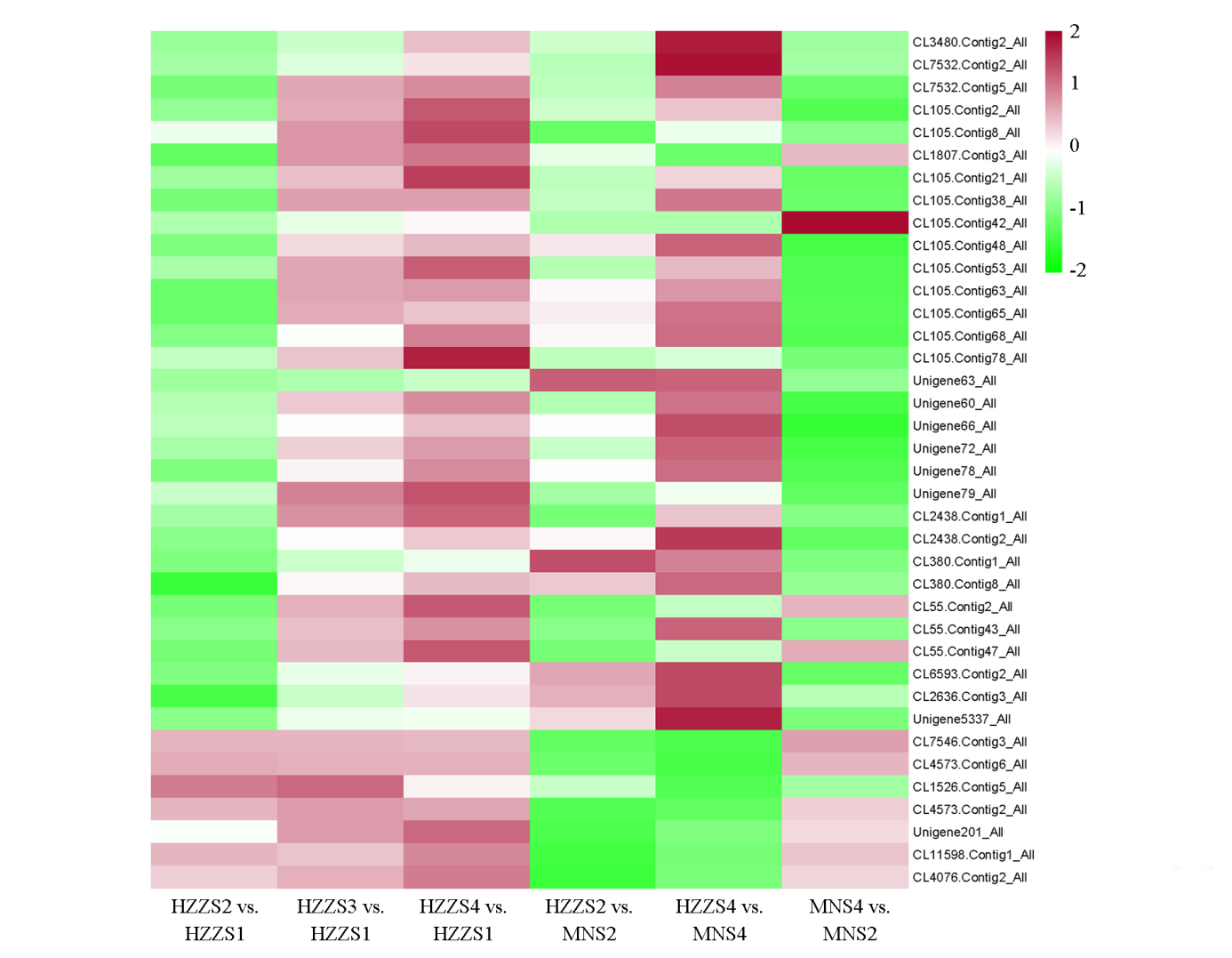 | HZZ-S4 vs. HZZ-S1 | 226 | 45 | 181 | HZZ-S2 vs. MN-S2 | 63 | 40 | 23 | |