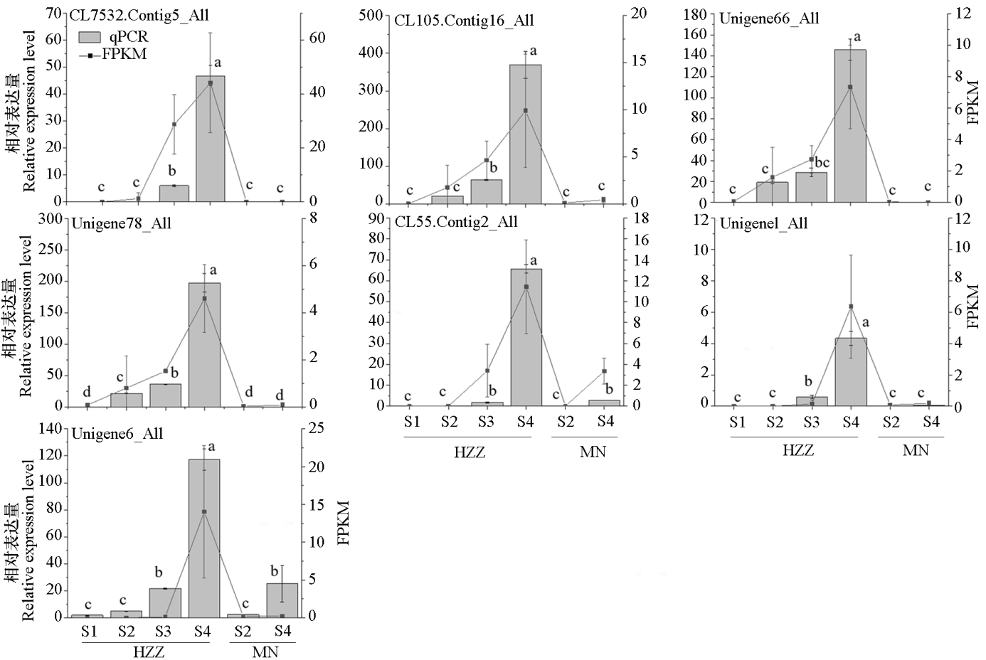 表4 各差异分组中萜类代谢相关的差异表达候选基因数
