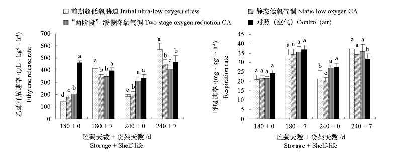 | 静态低氧气调 Static low oxygen CA | 180 + 0 | 12.13 ± 0.27 a | 0.121 ± 0.002 b | 10.2 ± 0.1 b | 4.44 ± 0.39 a | 4.78 ± 0.573 a |