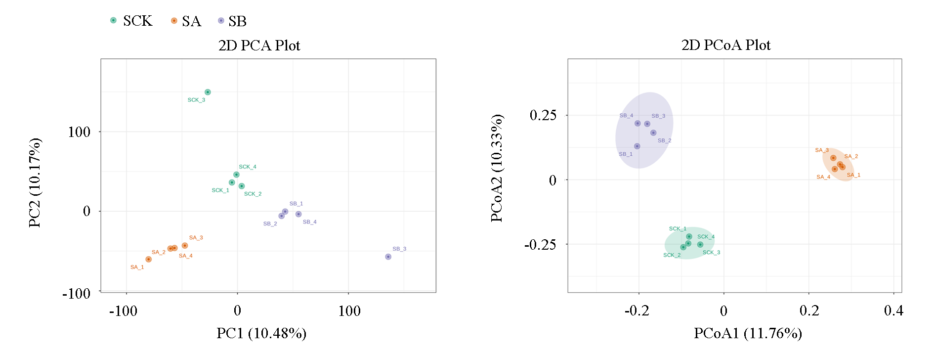 | SB | 15 307.5 ± 120.5 a | 26.52 ± 0.07 ab | 23.30 ± 0.40 b | 0.32 ± 0.02 ab | 40.70 ± 0 a |
