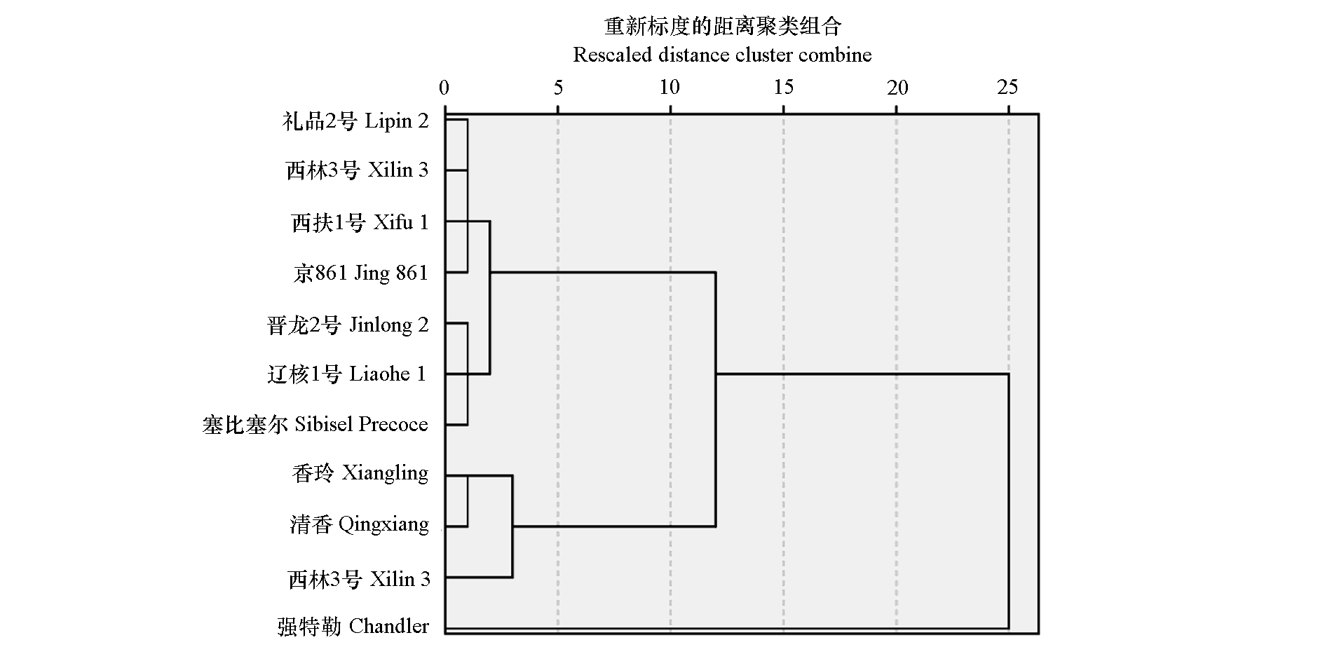 | 中林3号Zhonglin 3 | 0.891 | 0.602 | 0.359 | 0.189 | 0.608 | 0.354 | 0.041 | 0.792 | 0.429 | 0.474 | 8 |