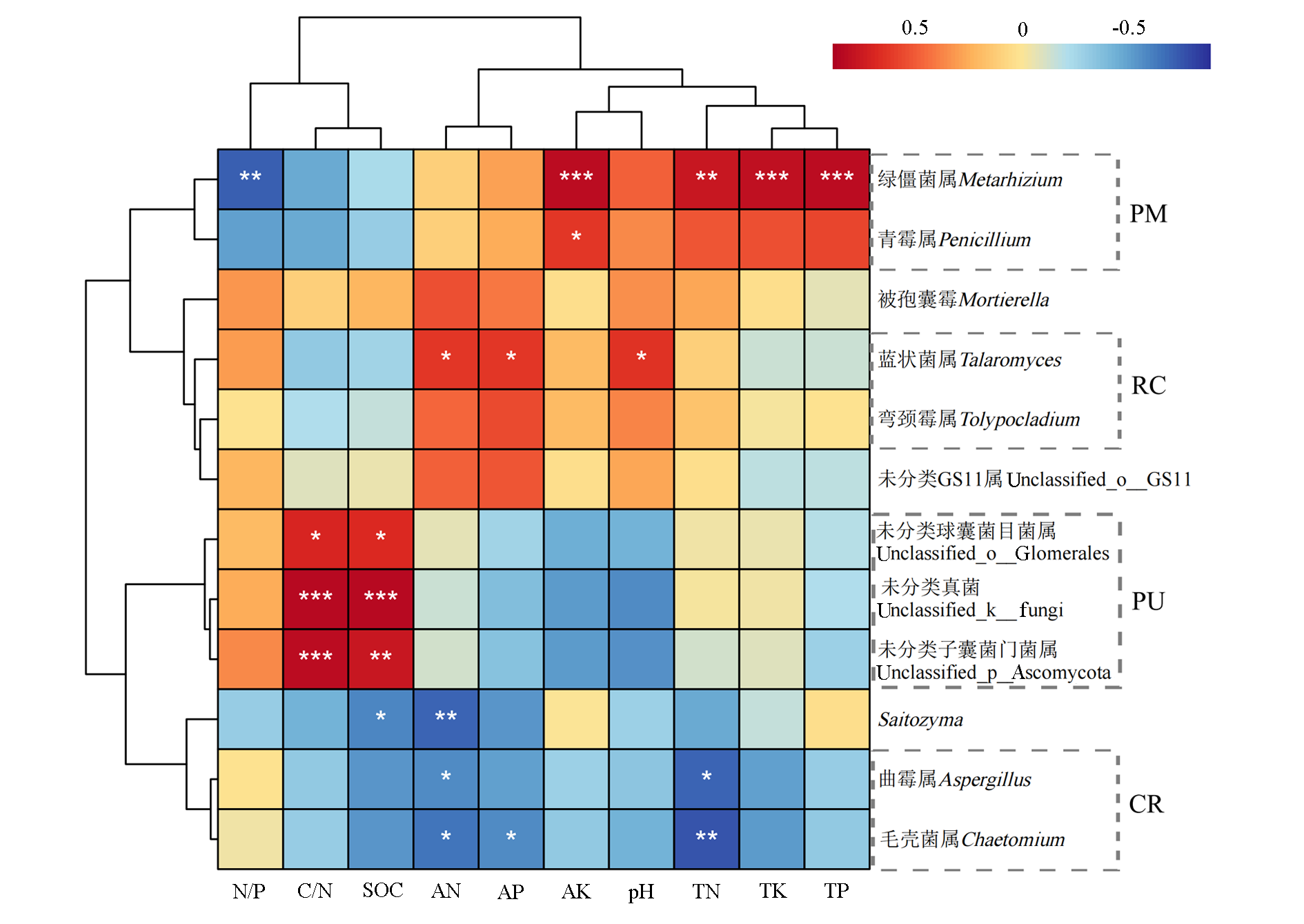 Table 3 Correlation between rhizosphere soil fungal community and soil nutrients of Rubus corchorifolius under four forest stands in Jinyun Mountain