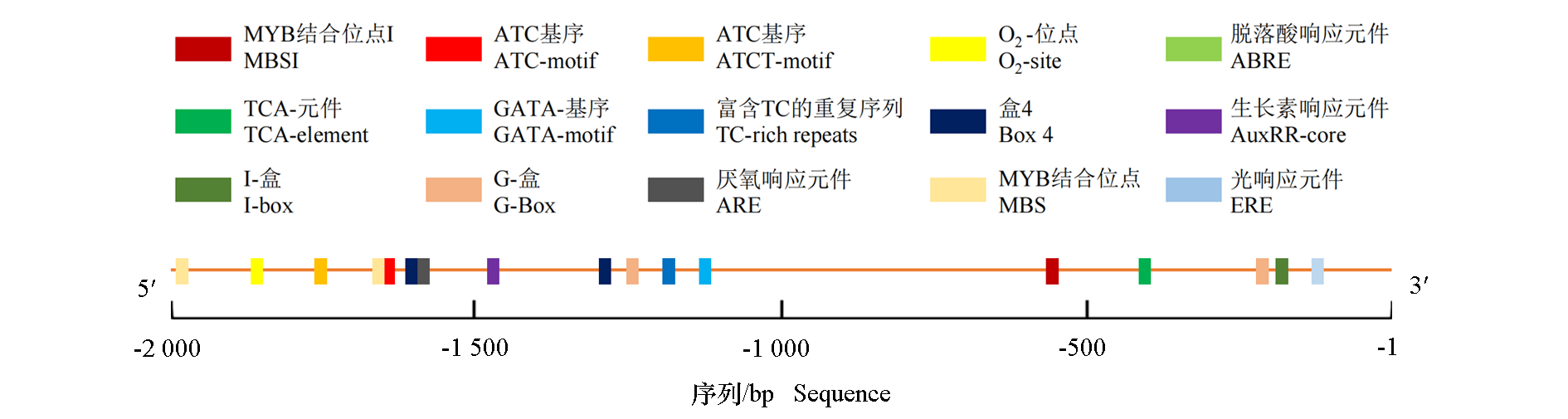 | G-Box | CACGTT | -1 251/-217 | 2 | 参与光响应的顺式作用调控元件 cis-Acting regulatory element involved in light responsiveness |