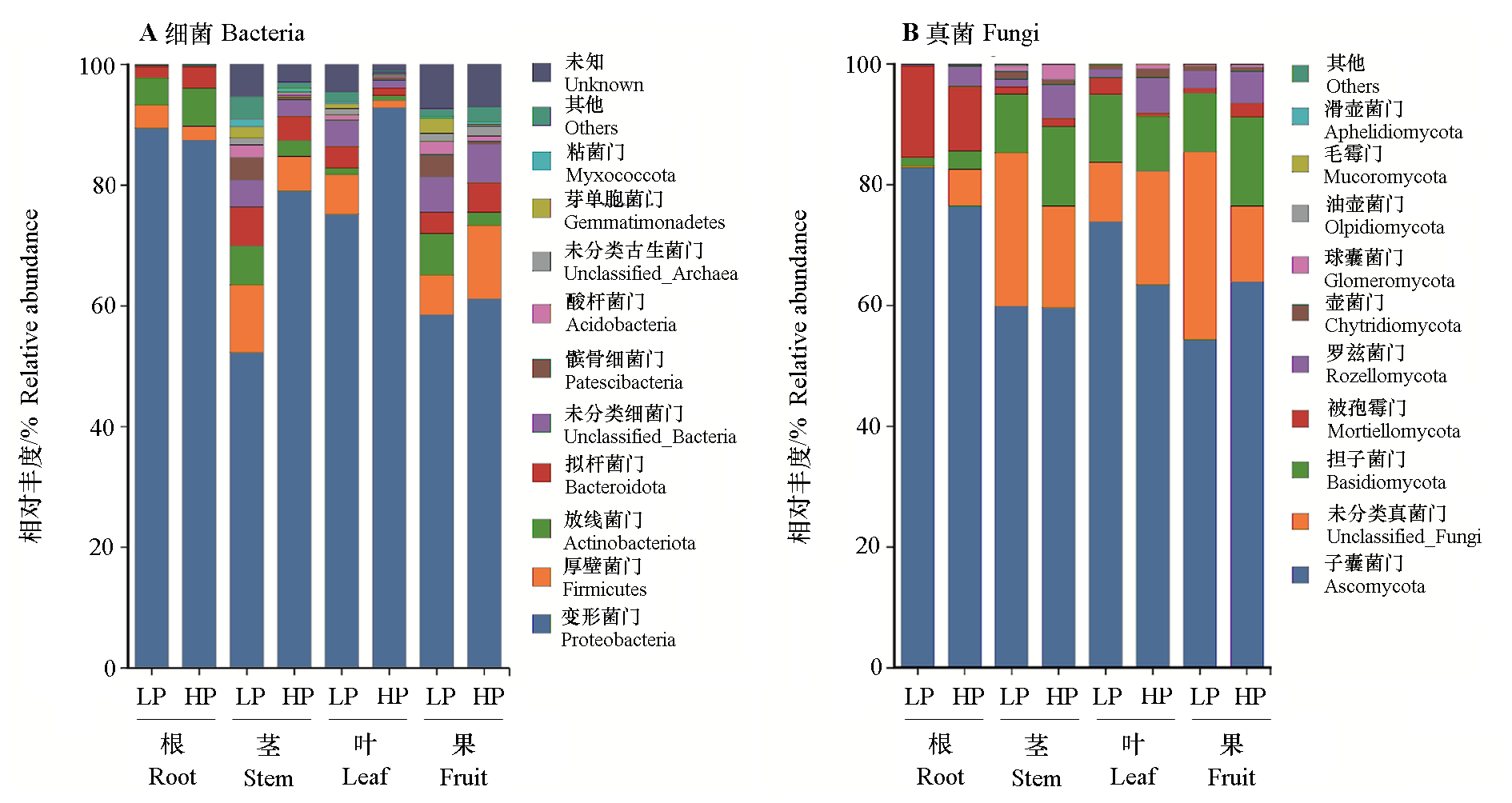 | 根 Root | HP | 700.85 ± 577.86 bc | 695.51 ± 578.59 bcd | 4.66 ± 1.48 c | 0.90 ± 0.06 ab |