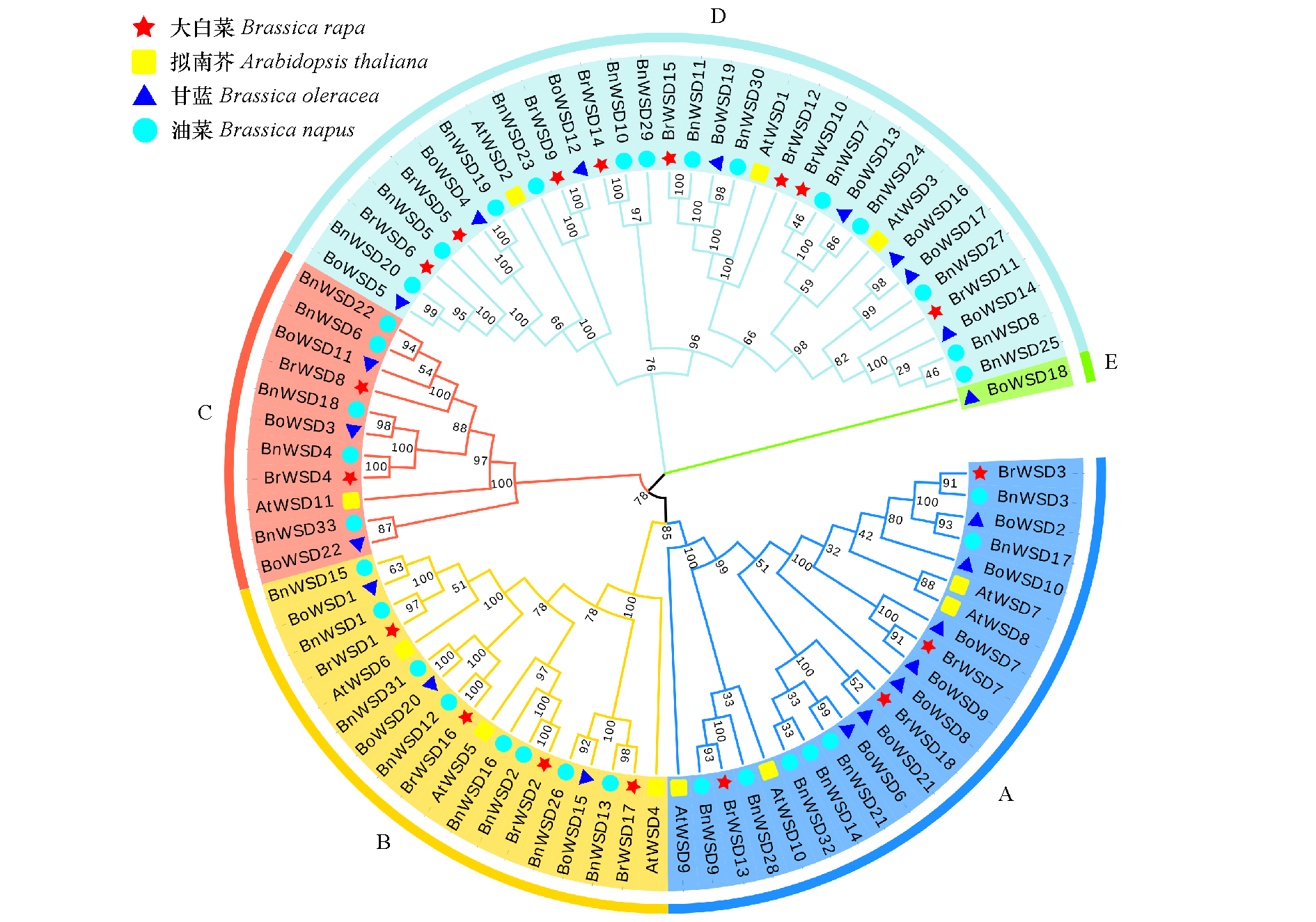 Fig. 4 Phylogenetic tree analysis of WSD proteins in Brassica rapa,Arabidopsis thaliana,Brassica oleracea and Brassica napus The numbers represent the statistical confidence of the branch